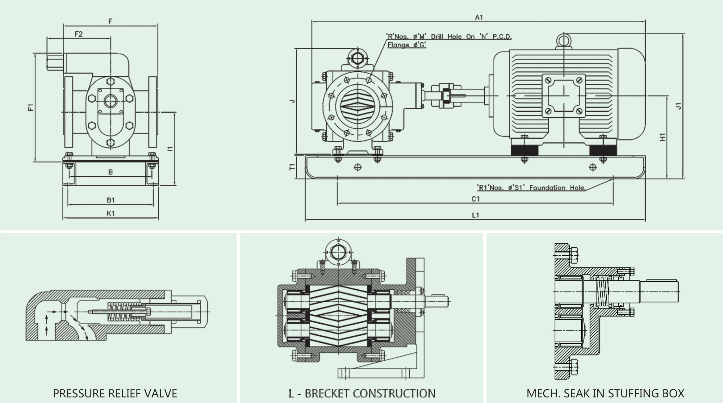 In these pumps size 1/2" to 2 1/2" are provided with thread at end of suction & delivery and they are available with foot or flange mounting, But in size 3" to 4" are provided with flange at the end of suction & delivery and they are available with foot mounting only. These pumps flange are as per standard AFA/ANSI - 300 class. These pumps can be operated up to pressure of 20 kg/cm2 with 5.0 LPM to 900 LPM flow capacity. These pumps are suitable for liquid up to viscosity of 1, 00,000 SSU and maximum temperature up to 2000C.