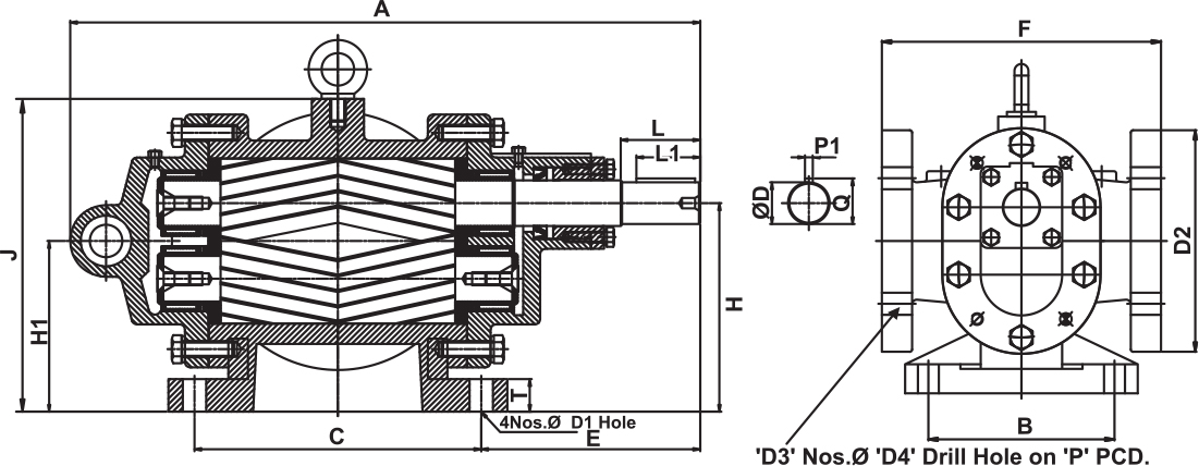 | A | F | J | B | C | E | H | H1 | T | D1 | D2 | D3 | D4 | P | D | L | L1 | P1 | Q | |||||||